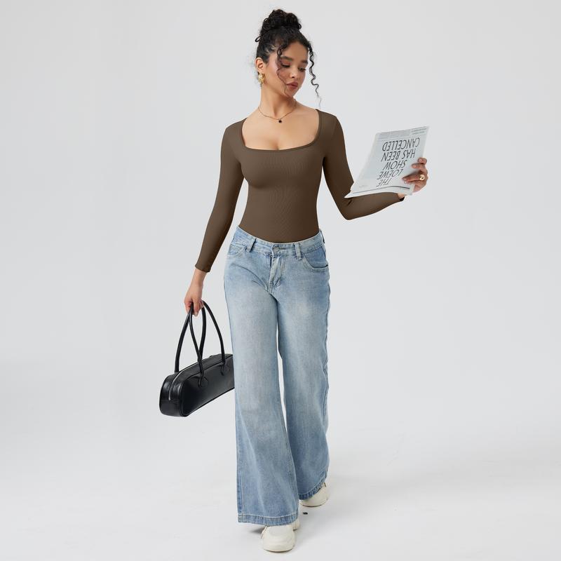 SHEVUE™ 2-Piece Long Sleeve Bodysuit with Square Neck