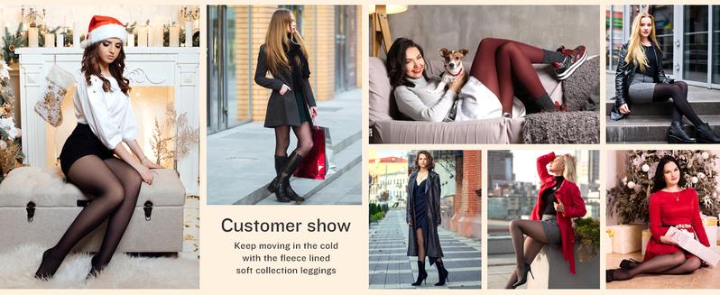 【Fake Translucent pantyhose】:This translucent fleece leggings are fashionable. The winter tights look like a sheer stocking from the outside but fill with warm fleece in the inside.You wear this fake translucent tights in autumn and winter, not only to show your sexy figure, but also to keep you warm.